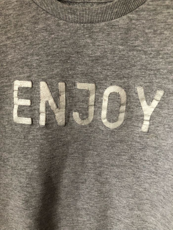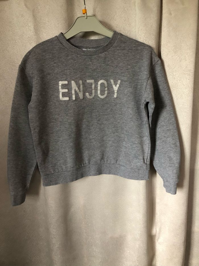 Sweat crop top gris chiné Écriture argentée ENJOY Taille 12 ans Gémo Mini tâche devant