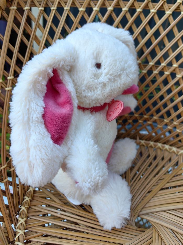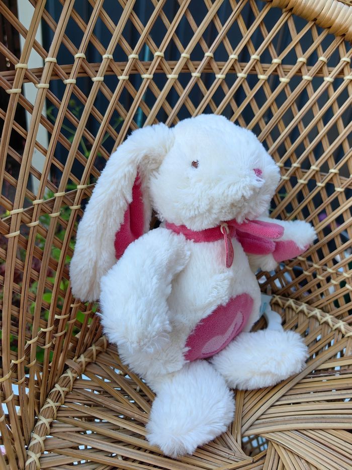 Peluche musical Les câlins Lapin blanc et rose framboise Parfait état