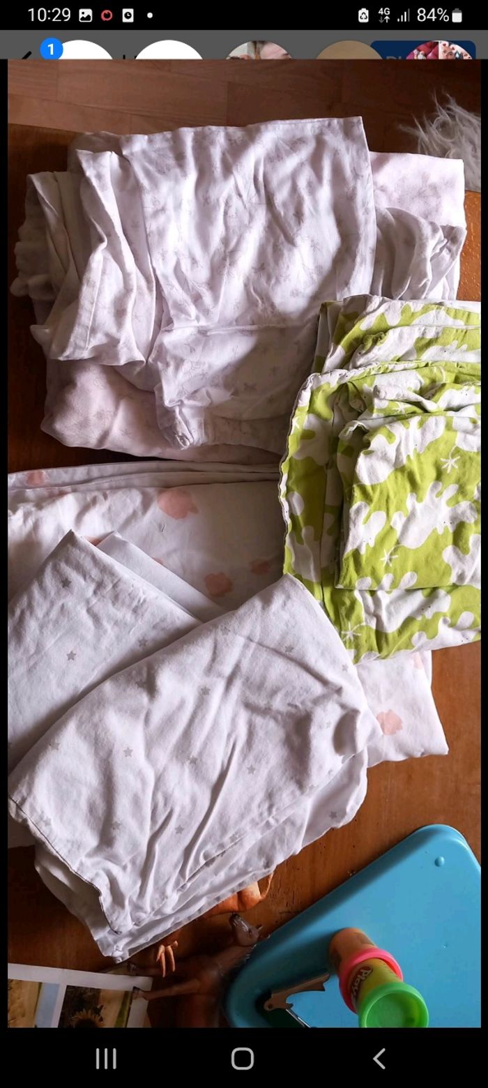 Ensemble de housse de couette et tête d'oreiller en parfait état non taché . Peu utilisé 7euros le lots ou possibilité de ne prendre que celle qui vous plaît