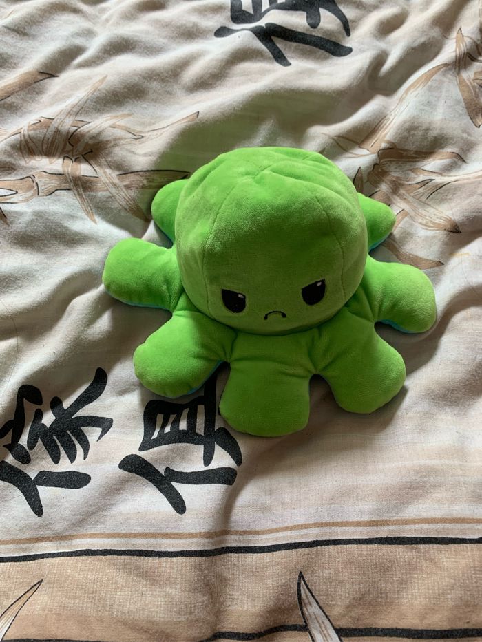 Poulpe réversible Un côté contente et pas content, bleu et vert