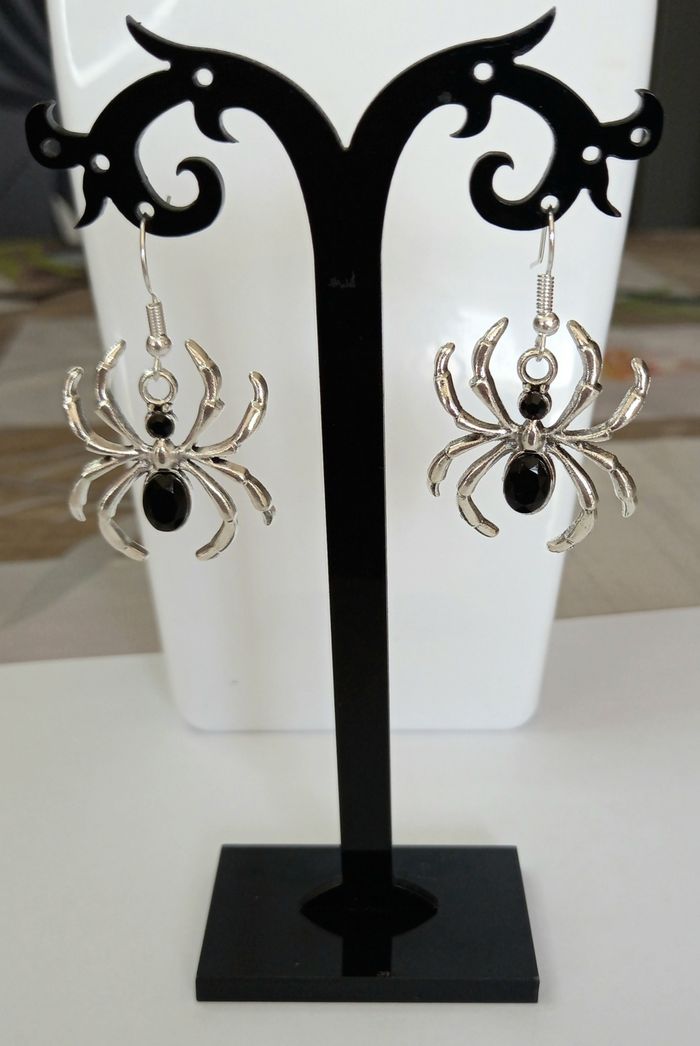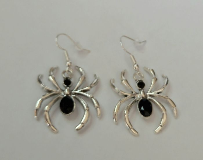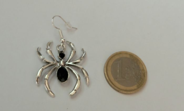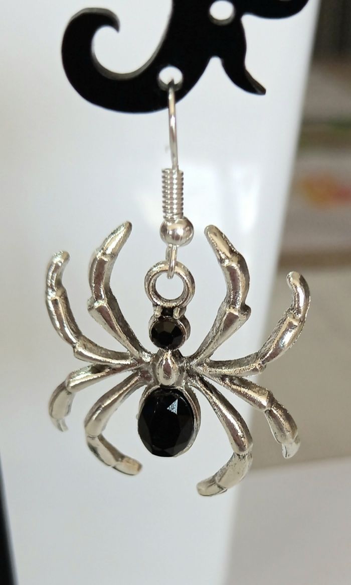 Paire de boucles d'oreilles motif araignée. Hauteur : 4,5 cms. Largeur : 2,6 cms. Boucles neuves sous blister. N'hésitez pas à regarder mes autres ventes. Envoi rapide et soigné.