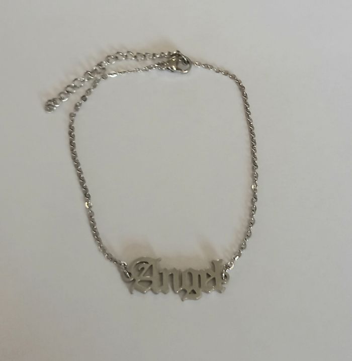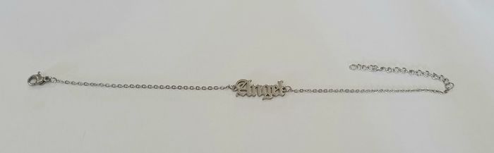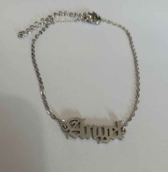 Chaine de cheville coloris argenté. Inscription ANGEL. Longueur : 20 + 5 cms de chainette ajustable. Chaine neuve sous blister. N'hésitez pas à regarder mes autres ventes. Envoi rapide et soigné.