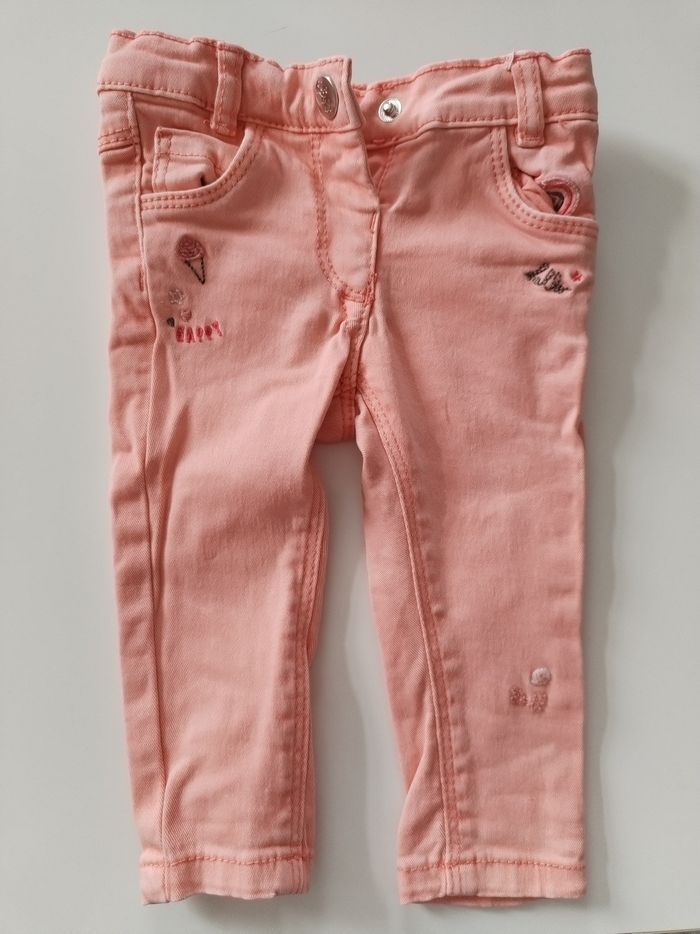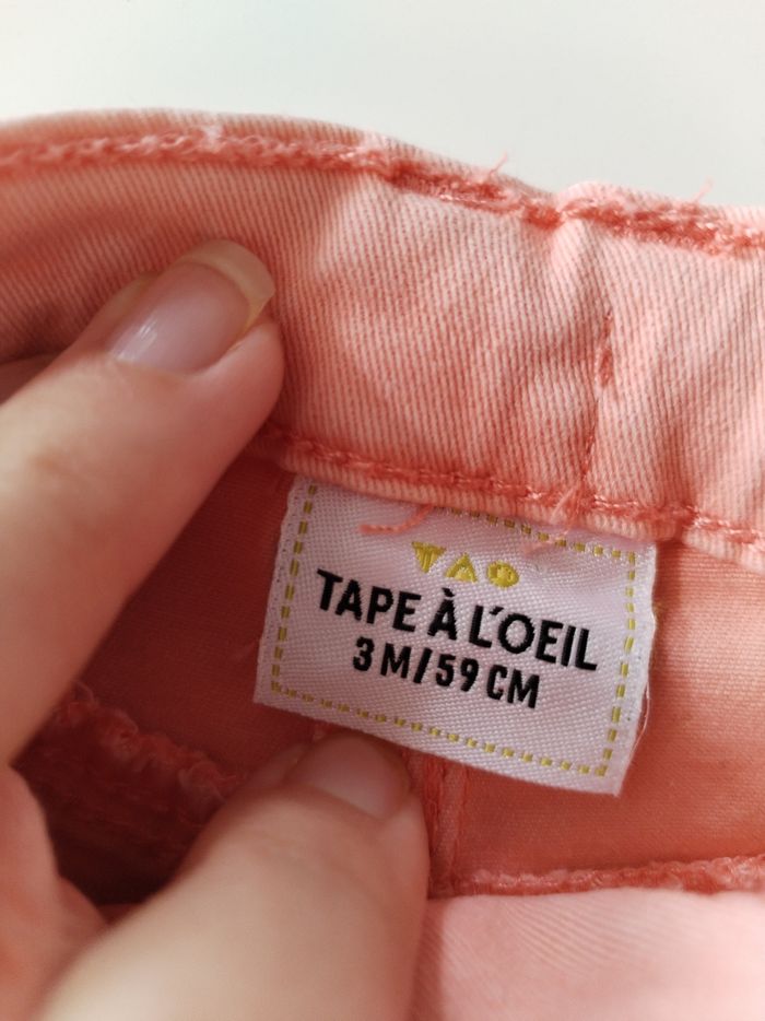 Pantalon-jean orange-corail taille 3 mois Marque tape a l'oeil Très bon état