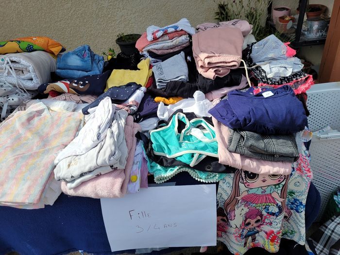 Vend lots de vêtements filles toute saison Pantalons Leggings Robe Shorts Maillot manche court et longues Pulls PyjamaS Collants Chaussettes Culottes. ATTENTION TAILLE DE 3 /4/5ANS. MIS DANS UN GROS CARTON