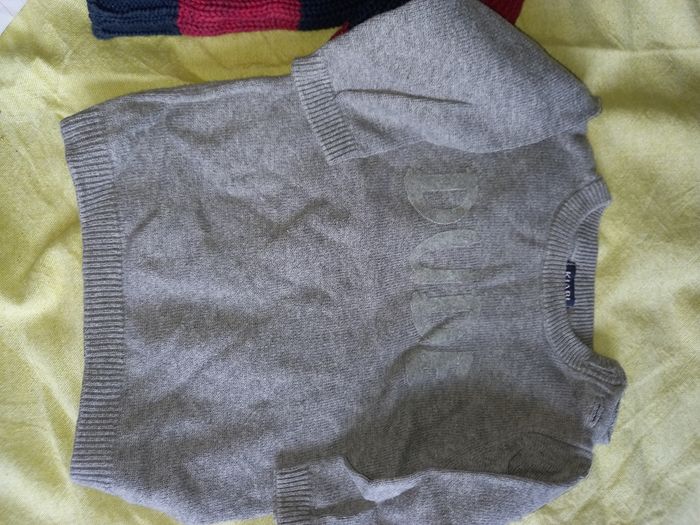 Lot de 2 1 pull gris maille 1 gilet maille marine et rouge