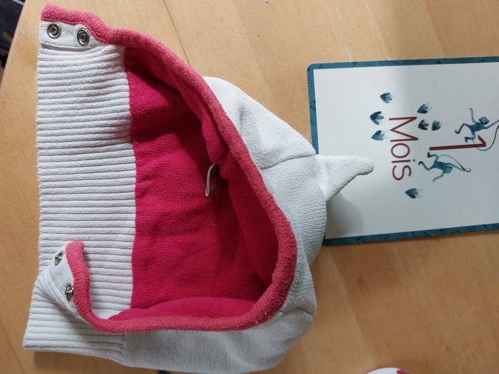 En fine maille Fermeture pressionnée sous le menton Tête de chat à l'arrière Oreilles en relief Très bon état