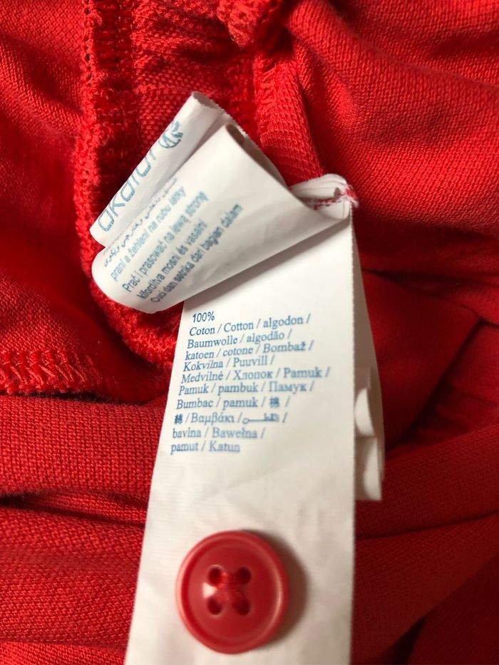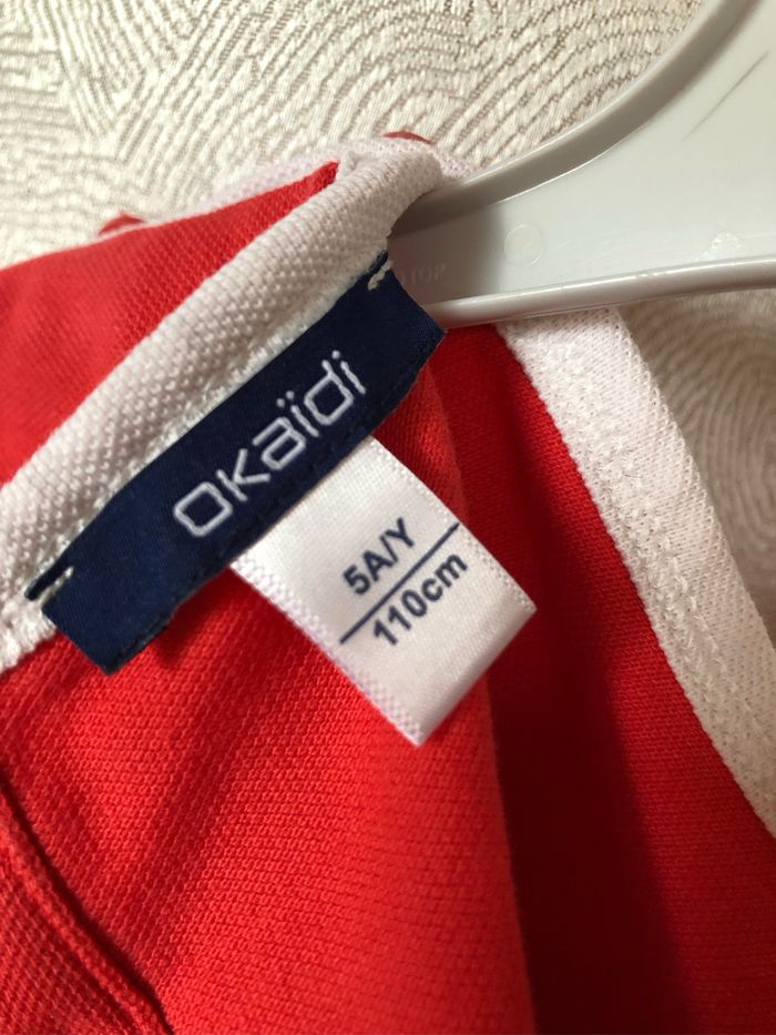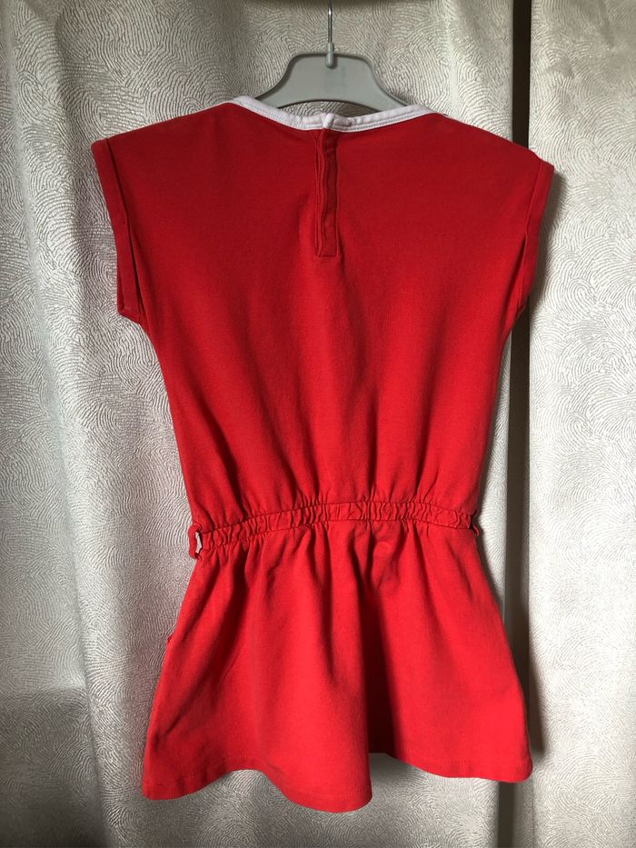 Robe d’été très confortable Rouge et blanc Encolure bateau Manches tombantes 2 poches Taille 5 ans 110 cm 3 micro tâches très peu visibles Très bon état général Okaidi
