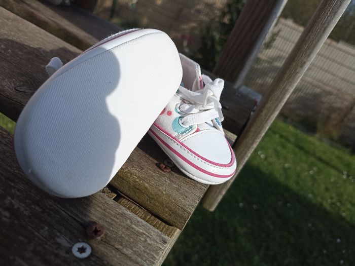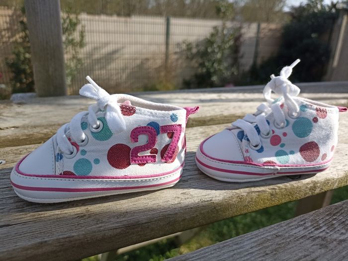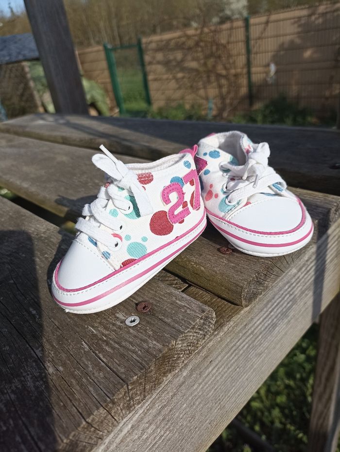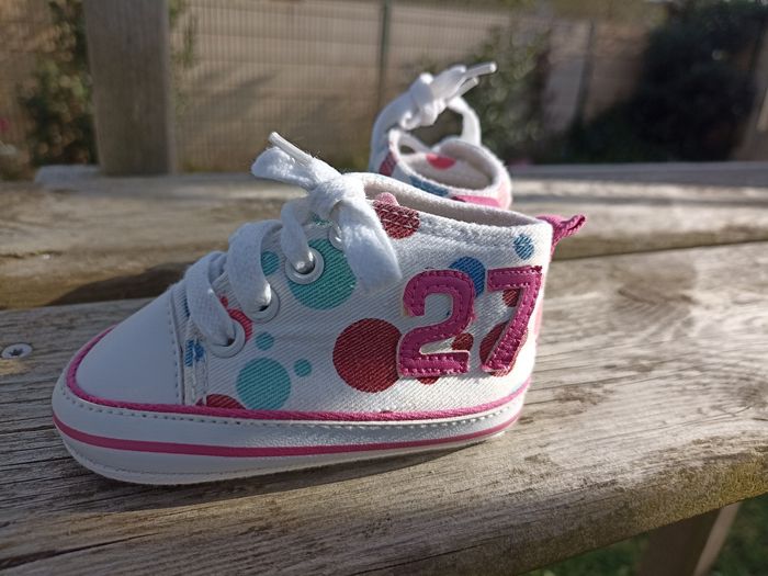 Basket pour bébé blanches à pois roses et bleus Très peu portées
