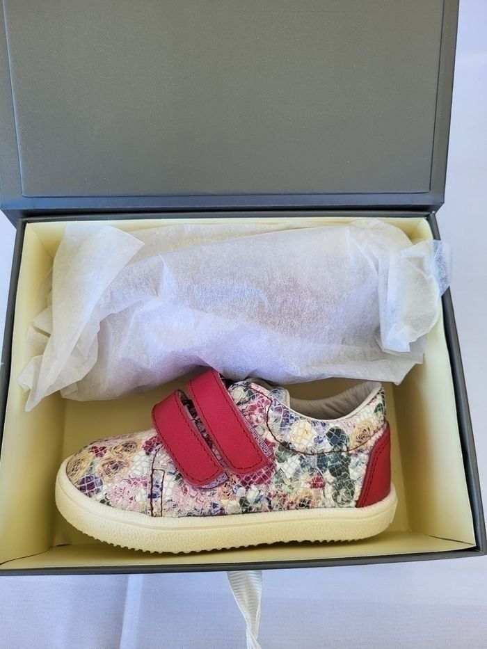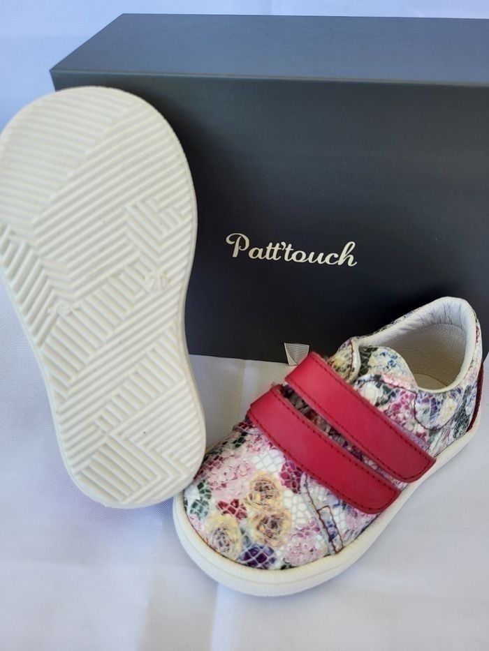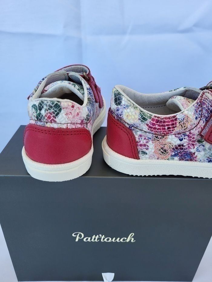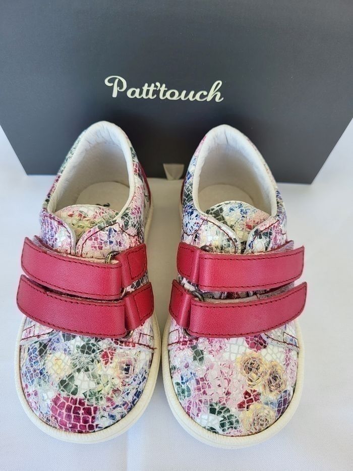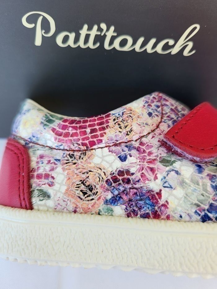 Tennis tout en cuir souple imprimé fleurs, doublure et semelle intérieure en cuir blanc, de la marque Patt'touch