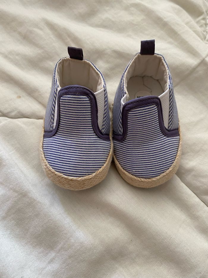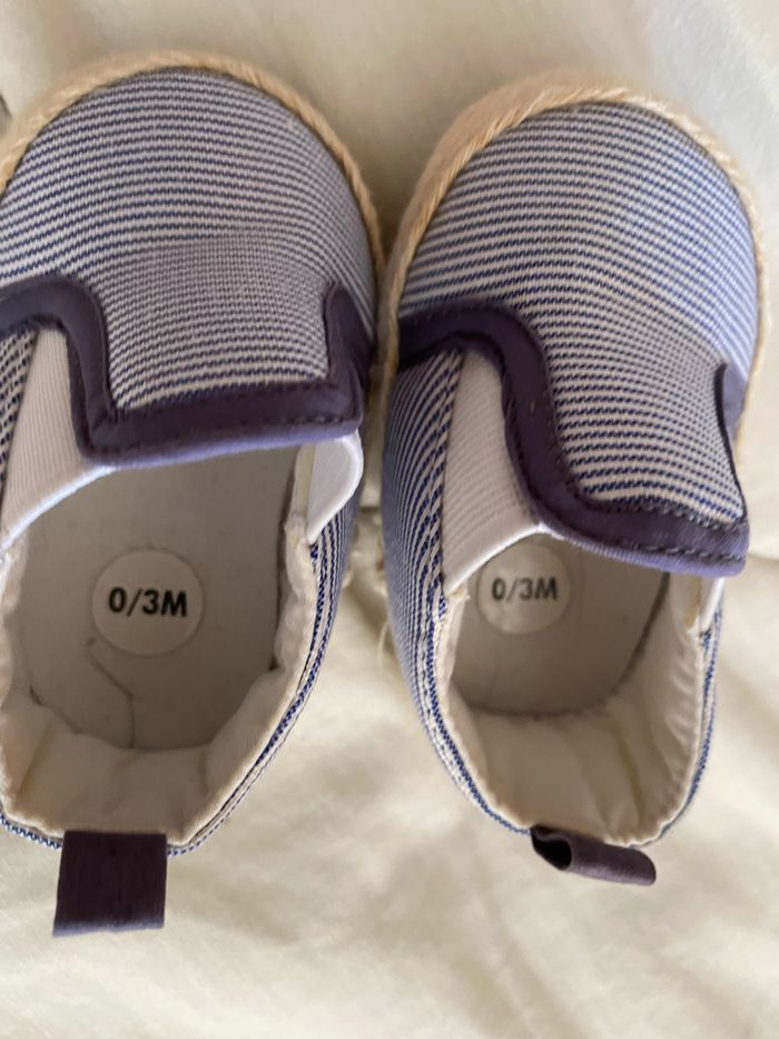 Chaussure rayée bleue et blanche taille 0/3mois jamais porter