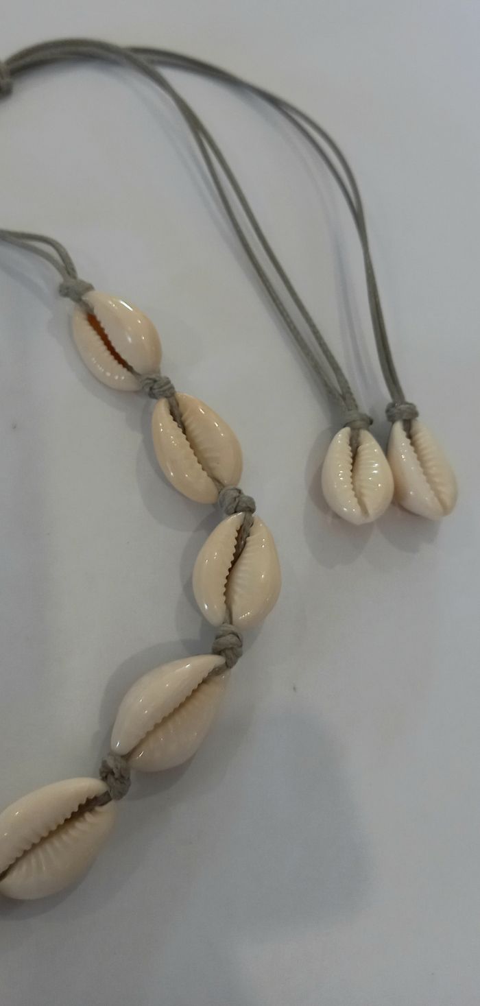 Parure collier et bracelet coquillage fil gris - photo numéro 1