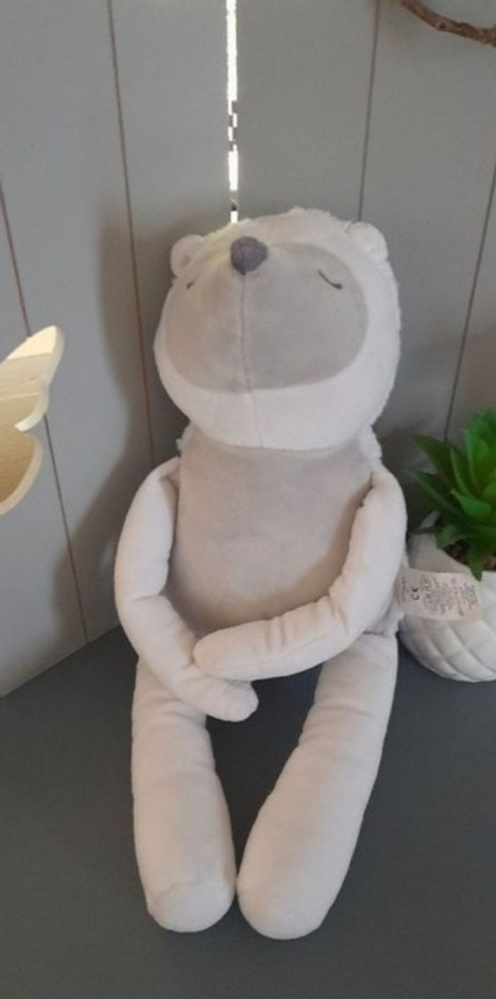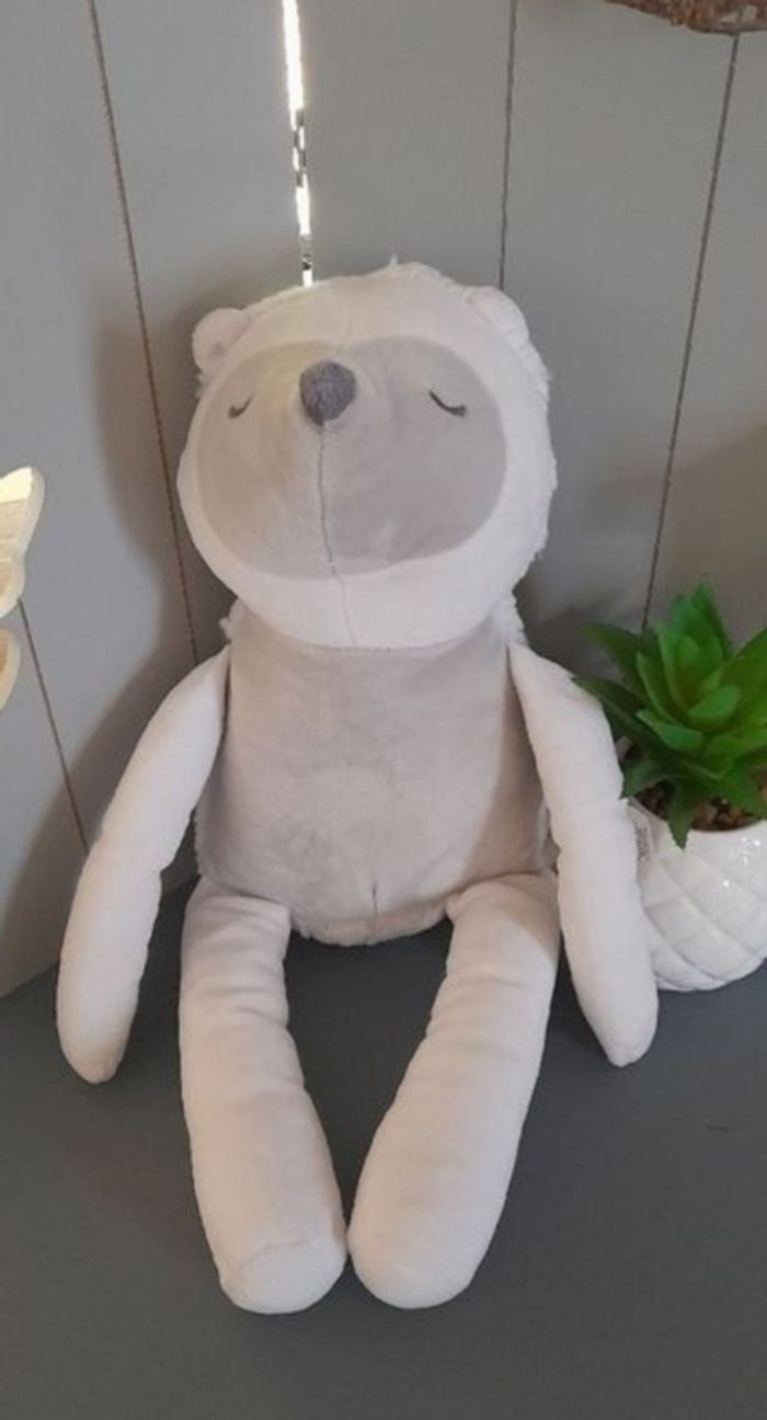 Doudou/ peluche hérisson, gris et blanc Grain de blé, yeux dormeurs, scratchs pattes, modèle cm, tbe, 40 cm allongé