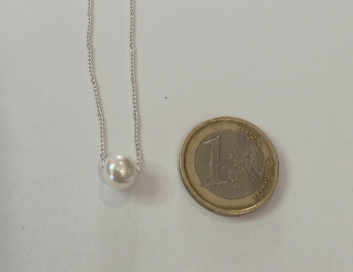 Chaine coloris argenté avec perle blanche. Longueur : 40 cms. Collier neuf sous blister. N'hésitez pas à regarder mes autres ventes. Envoi rapide et soigné.