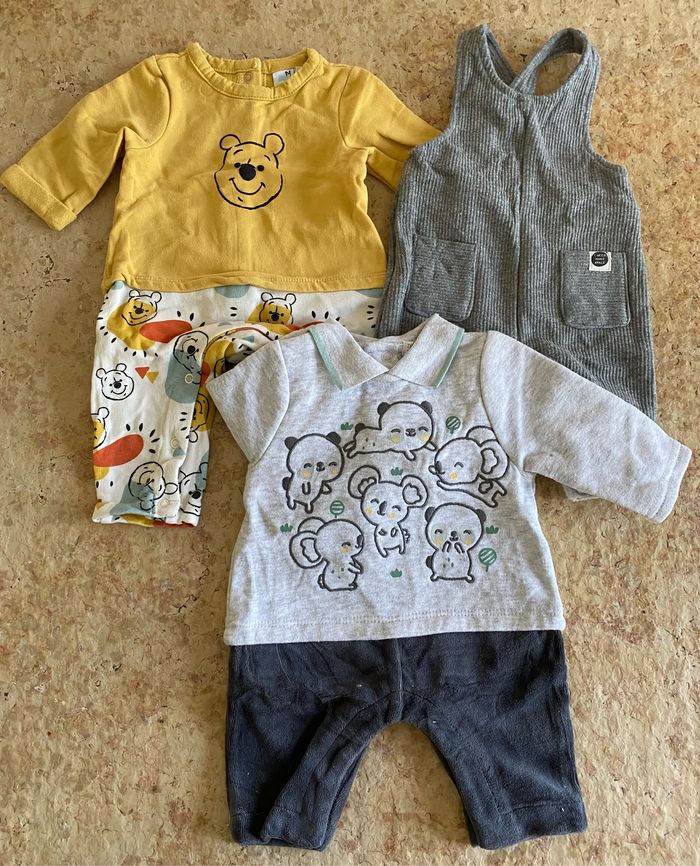 Lot de 3 salopettes chaudes 2 manches longues (Orchestra + DPAM) 1 sans manche Kiabi Très peu porté Maison non fumeur Remise activée sur les lots Envoi rapide et soigné