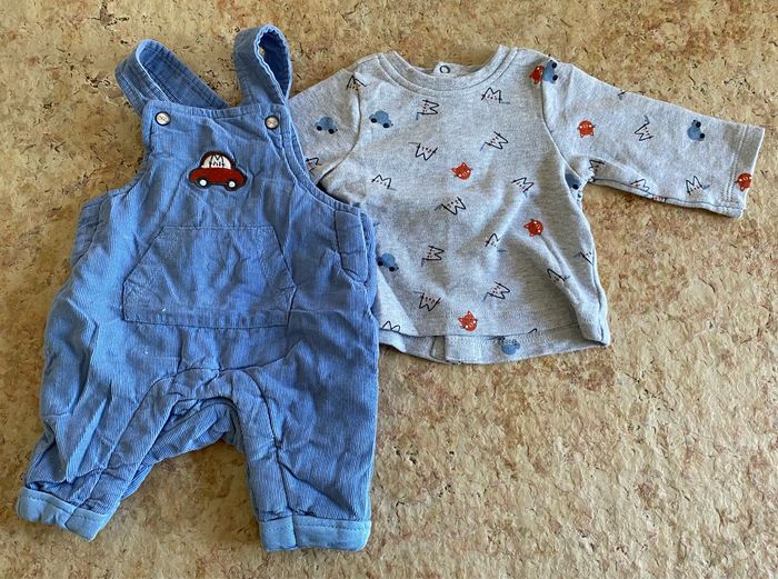 Ensemble hiver salopette + t-shirt manches longues 1 mois - 54 cm Orchestra Très peu porté Maison non fumeur Remise activée sur les lots Envoi rapide et soigné