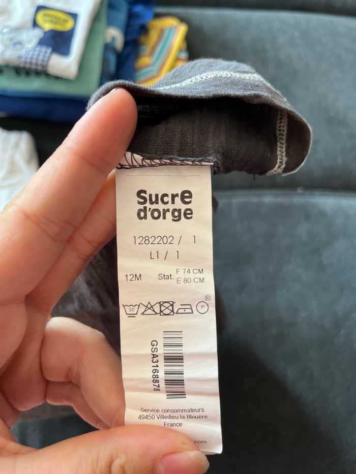 T-shirt bébé garçon très bon état général Marque Sucre d’Orge Taille 12 mois - 74cm