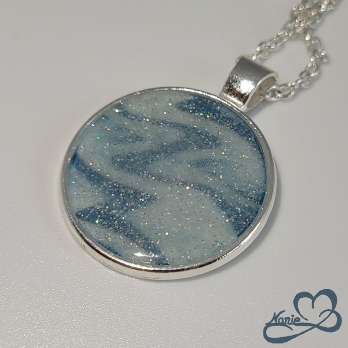 Sautoir argenté et bleu pailleté fluorescent - photo numéro 1