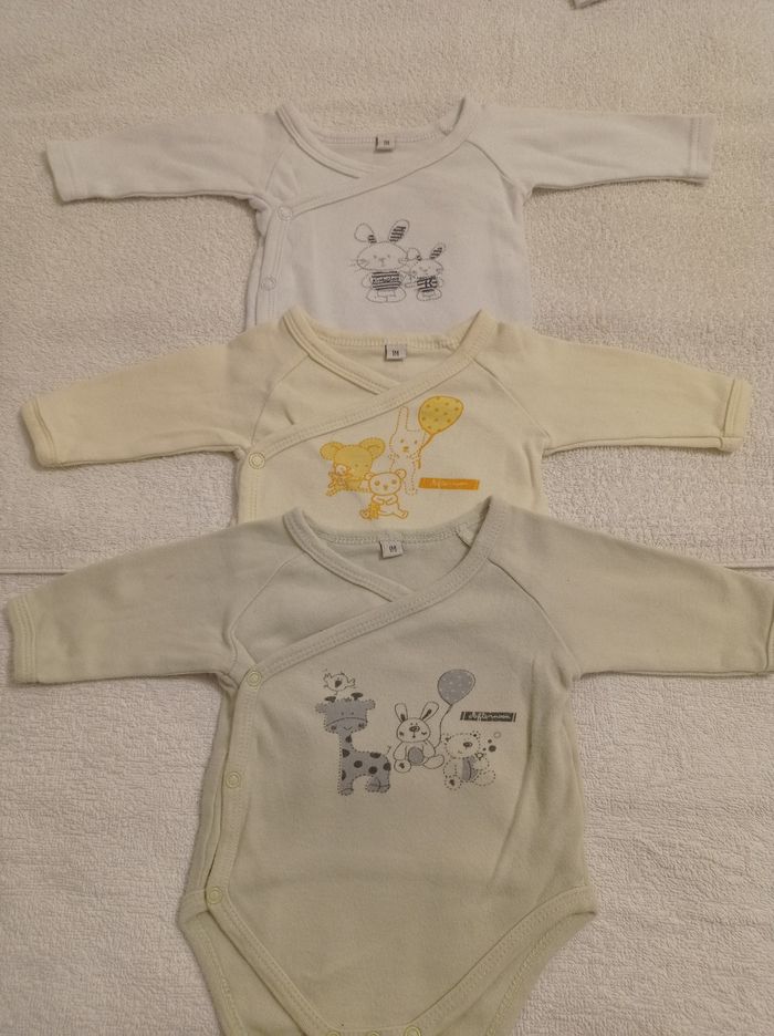 Lot de 3 body un mois blanc et jaune pâle vert amande très très bon état voir photos