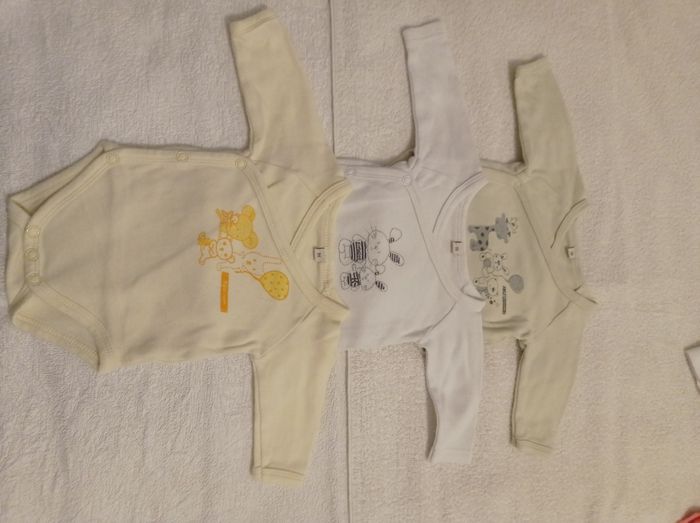 Lot de 3 body un mois blanc et jaune pâle vert amande très très bon état voir photos - photo numéro 1