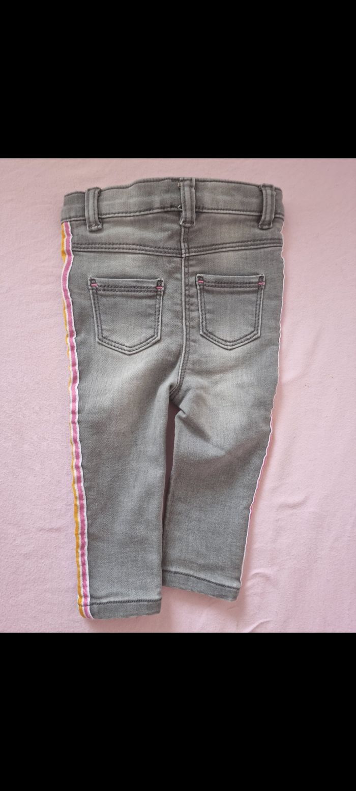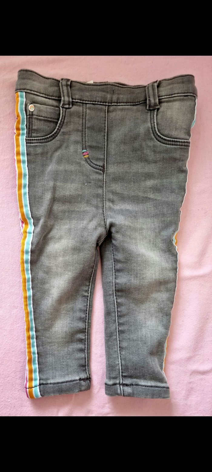 Jean gris Orchestra avec bandes blanche, bleu, jaune et rose sur les côtes. Taille 9 mois - 71cm Neuf, jamais porté