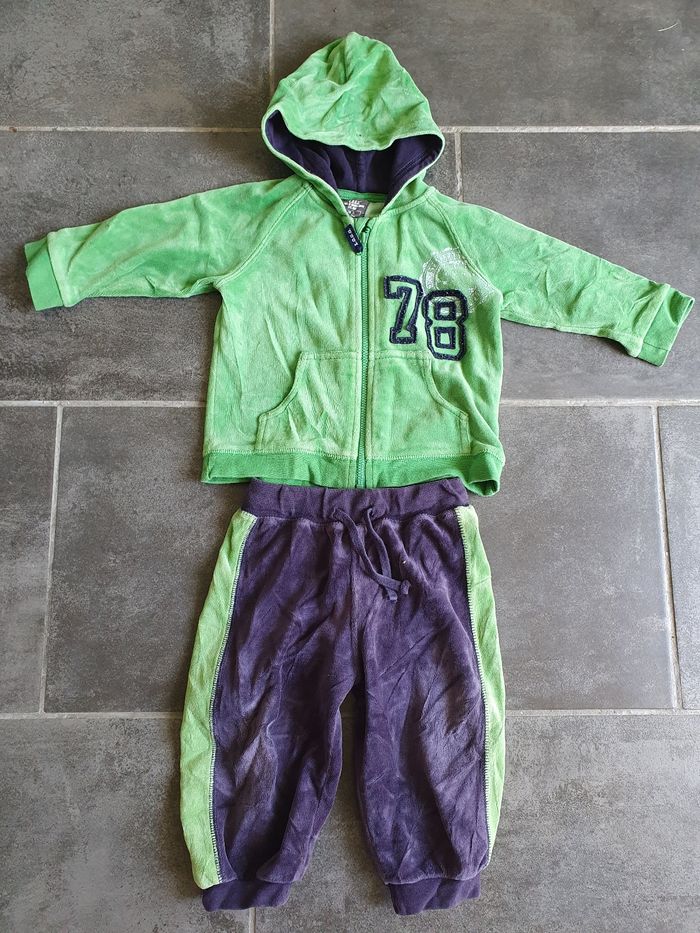 En très bon état. Taille 12-18mois. Velours vert et bleu marine