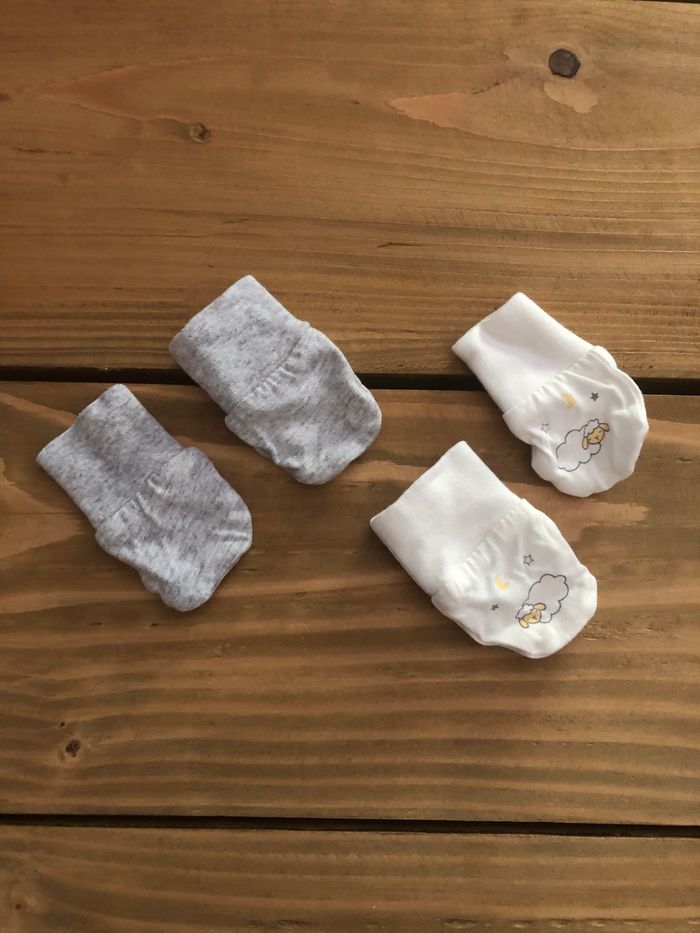 Moufles naissance - 1 mois Une paire grise et une paire blanche avec motif Neuf