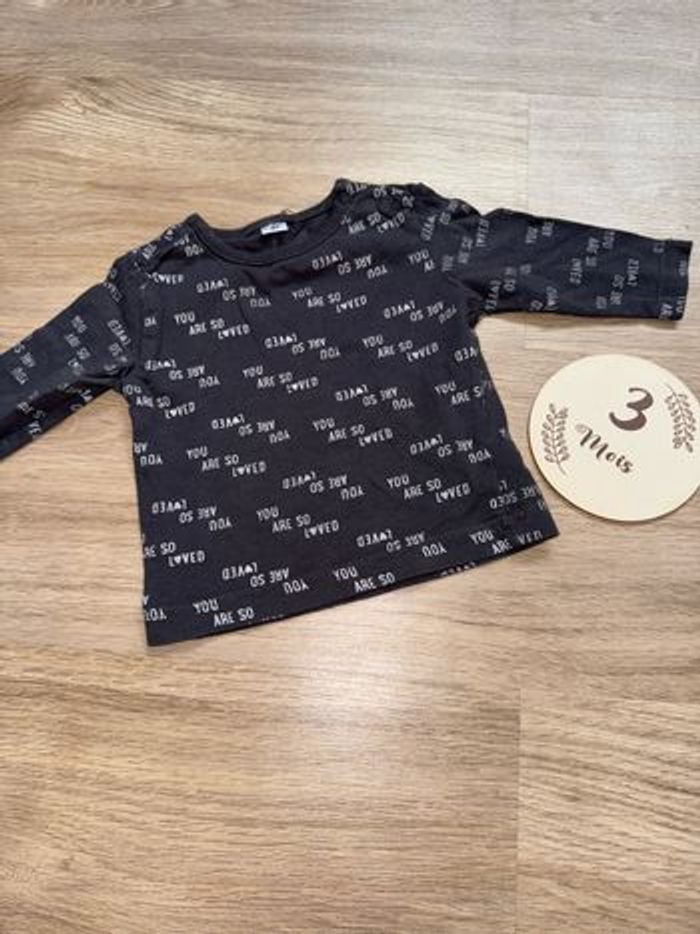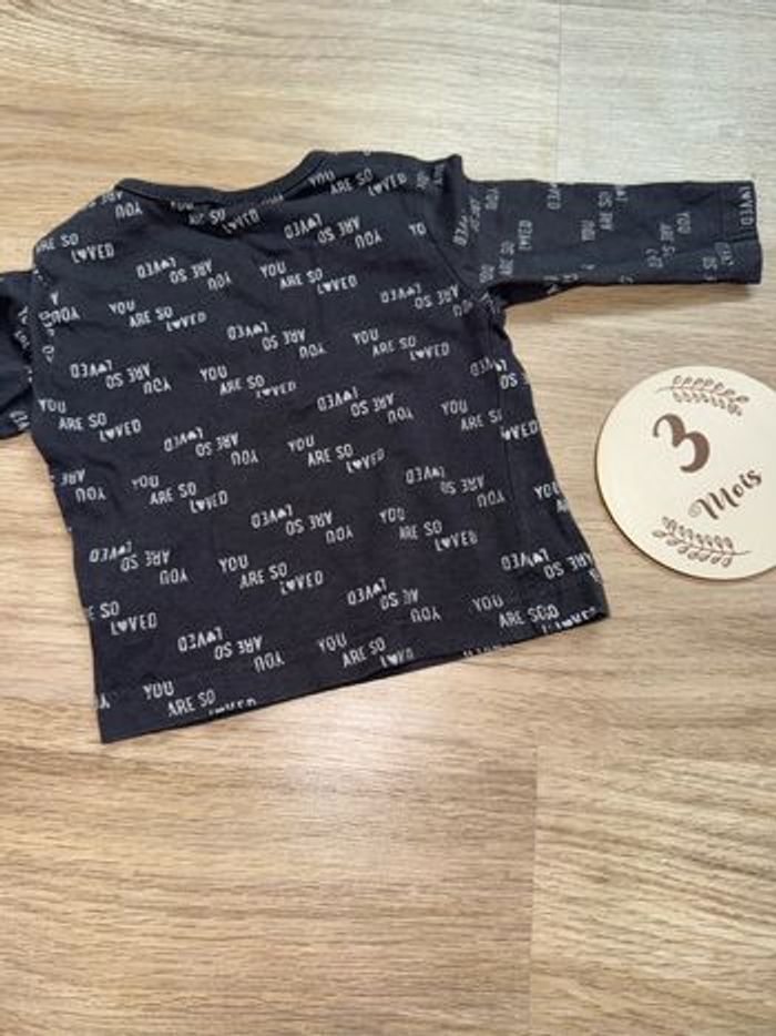Le gris foncé : tissus fin, manches longues, ouverture au col, motif Love ZEEMAN Taille 3mois 100% coton