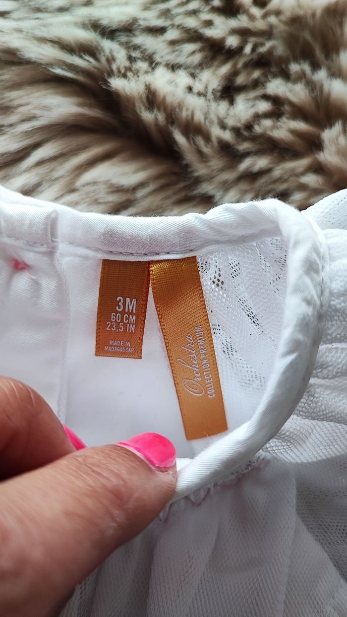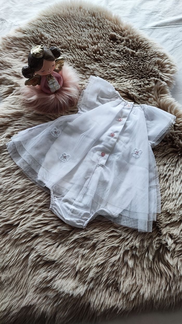 Robe body blanche idéale pour un mariage ou un baptême. Boutons dans le dos. De la marque orchestra En taille 3 mois En très bon état/ maison non fumeur #laetitia33700filletroismois