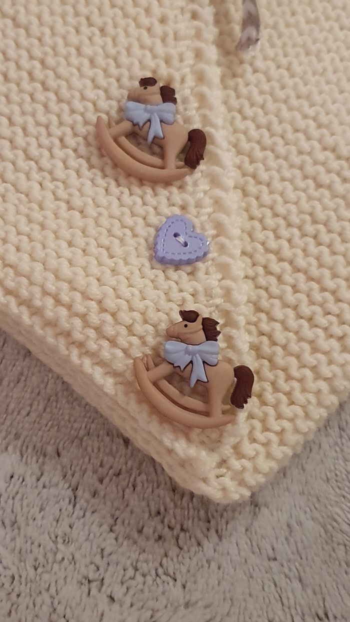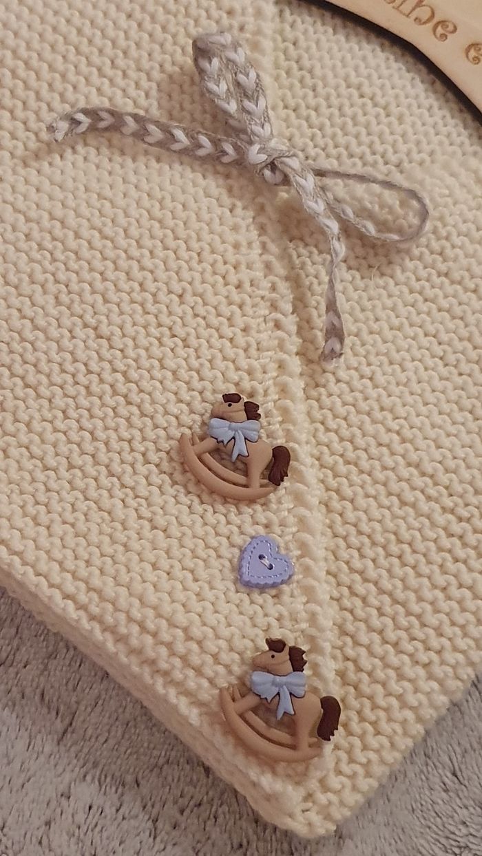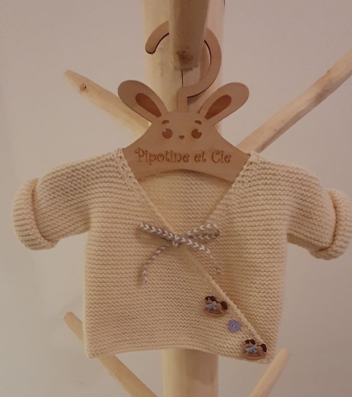 Adorable brassière cache-coeur tricotée main en laine qualité woolly de chez DMC, modèle unique Taille 3 mois