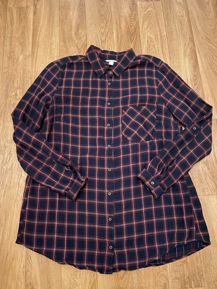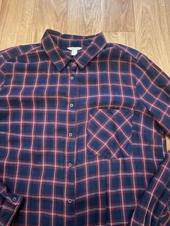 Chemise à carreaux bleu marine et bordeaux Manches longues et 3/4 Coton Marque Esprit 40