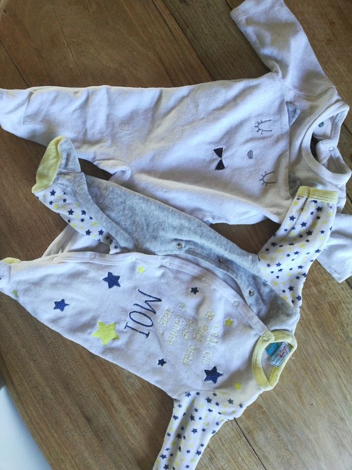2 pyjamas manches longues 1 mois Blanc: tape à l'œil Etoiles: manon & valentin