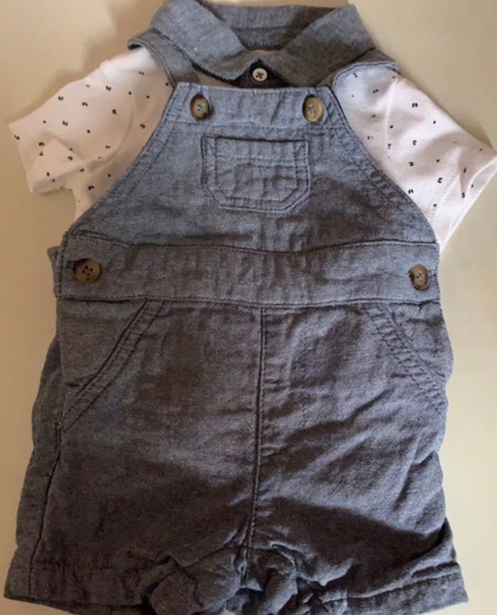 Ensemble salopette + polo Kiabi : - salopette : 3 mois - polo : 1 mois (jamais porté)