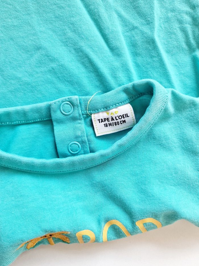 Tous mes articles Tape À L'Œil : #taosev Tous mes tee-shirts : #tshirtsev Tous mes habits ♂️ 12 mois : #12moissevgarcon Tous mes habits ♂️ 18 mois : #18moissevgarcon 🚨 Prix fixe Tee-shirt manches courtes Marque : TAPE À L'ŒIL Couleur : turquoise Taille : 18 mois - 80 cm État : très bon état Étiquette des matières découpée Retrait sur place ou envoi.