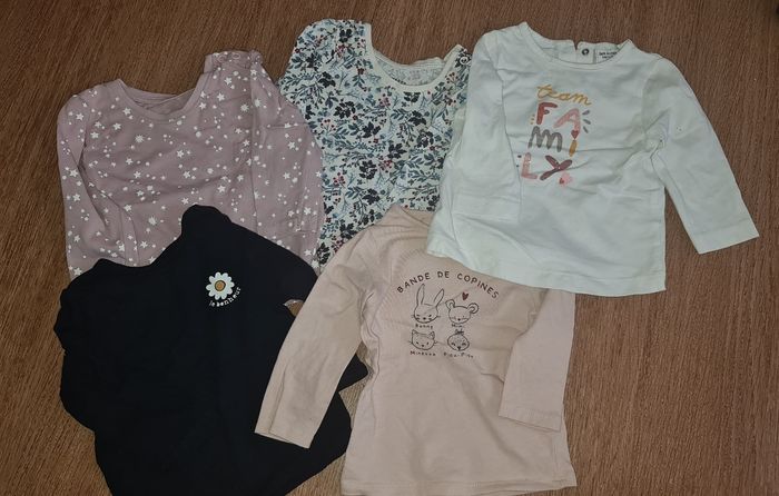 Lot tee shirt manche longue il y a du primark et du kiabi Le blanc a une petite tache sur la manche voir photo