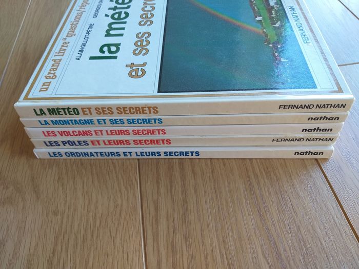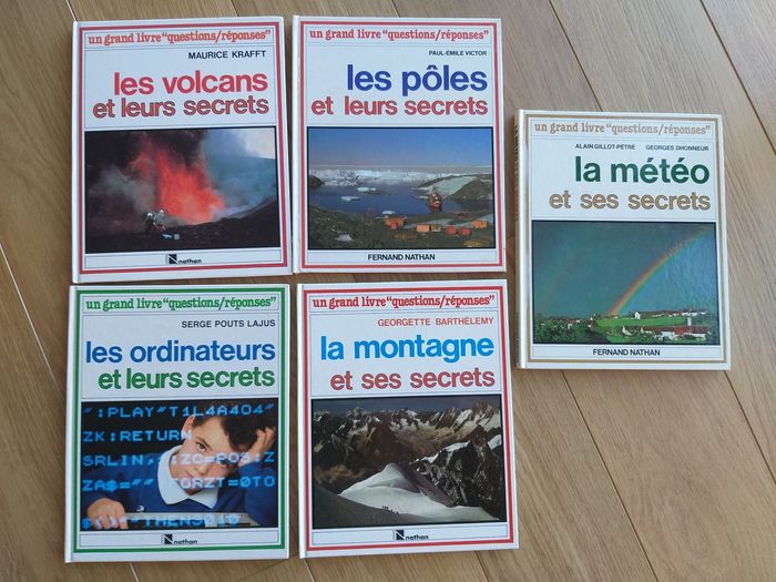 Vends lot de 5 livres "un grand livre questions/réponses" - La montagne et ses secrets - La météo et ses secrets - Les volcans et leurs secrets - Les pôles et leurs secrets - Les ordinateurs et leurs secrets Livres vintage mais restent en bon état général.