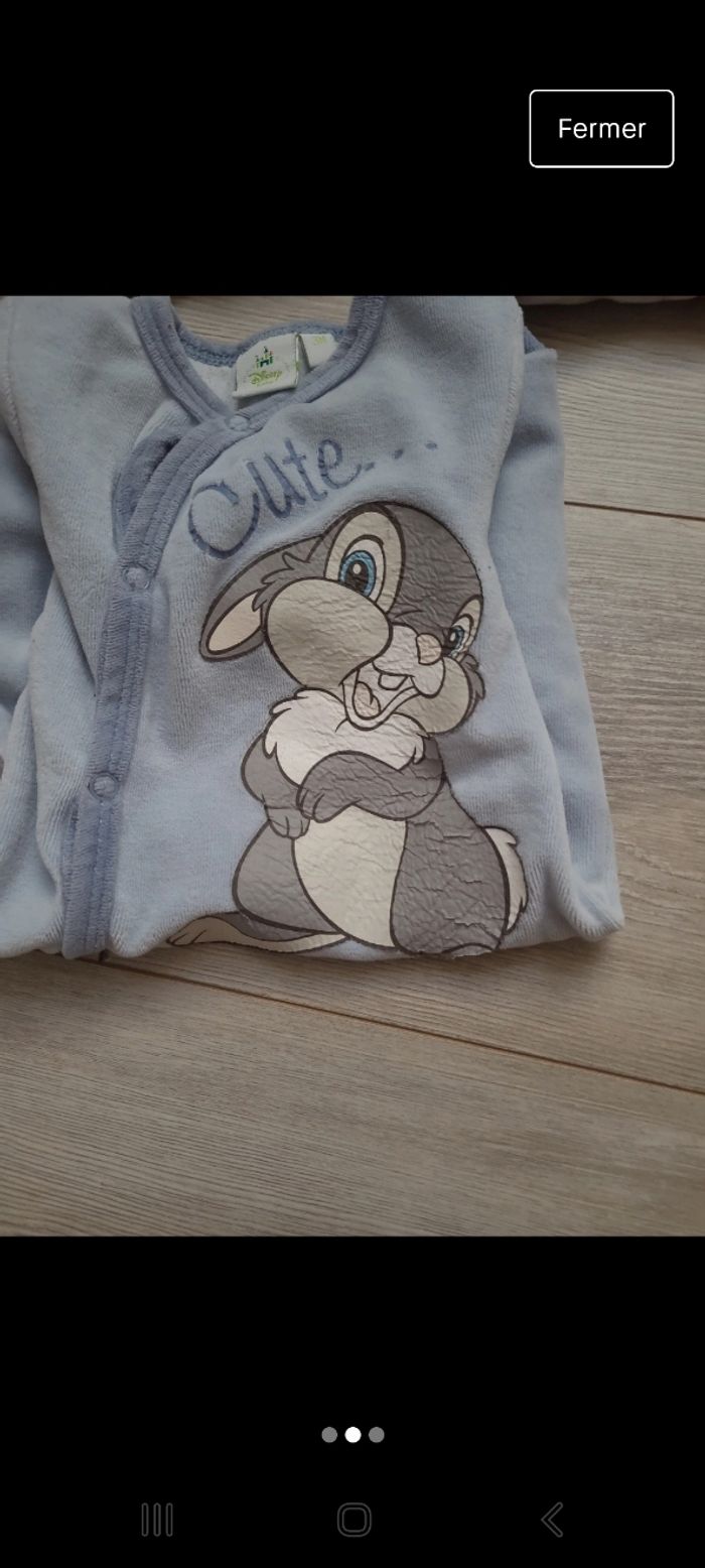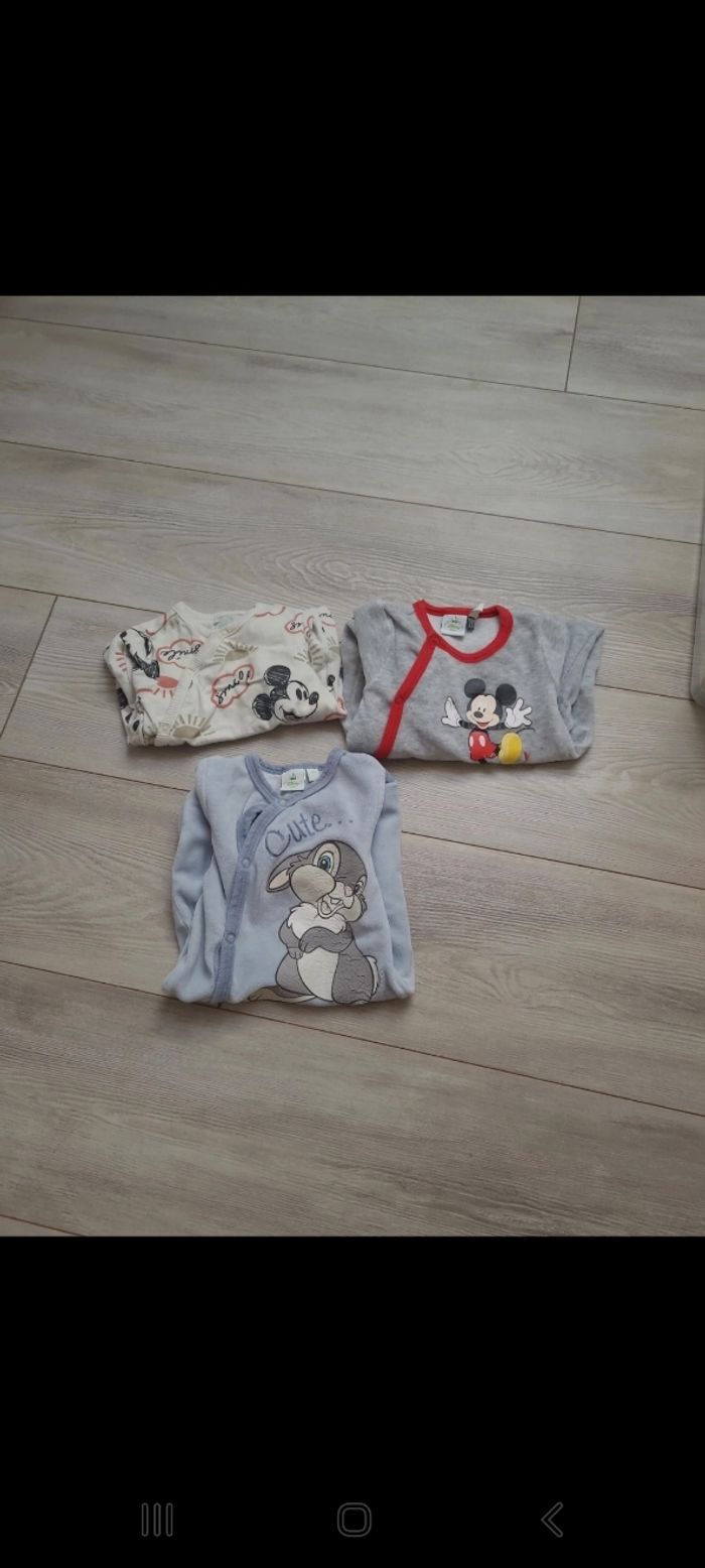 Lot de 3 pyjamas disney, 2 en velour et 1 en coton Le Mickey et le panpan sont un peu craqueler à cause des lavages mais sinon en bon état Taille 3 mois