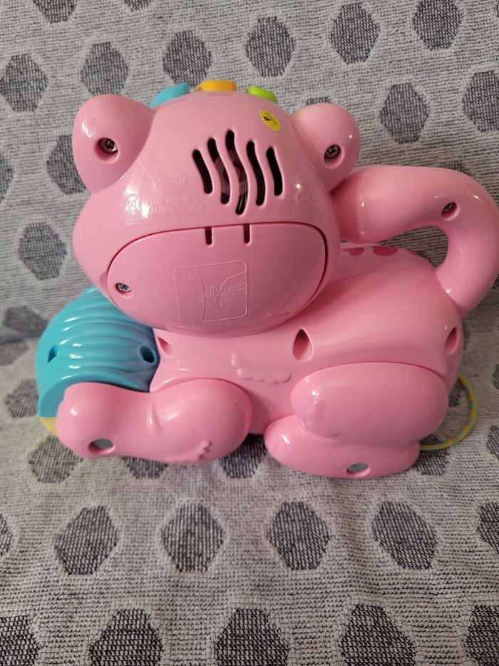 Fonctionne très bien. Très peu utilisé. Mais la marque "Vtech" écrit sur Le jouet est un peu effacé. Description Un chaton tout mignon à tirer pour voir sa pelote bouger ! Lorsque Bébé fait rouler le chaton, ses pattes bougent, la pelote de laine tourne et roule sur le sol et il déclenche des phrases, des sons et des mélodies