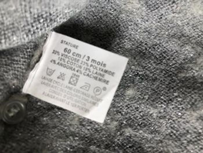 Gilet gris pailleté argenté Composition viscose polyamide coton laine angora cachemire Taille 3 mois 60 cm Bout’chou