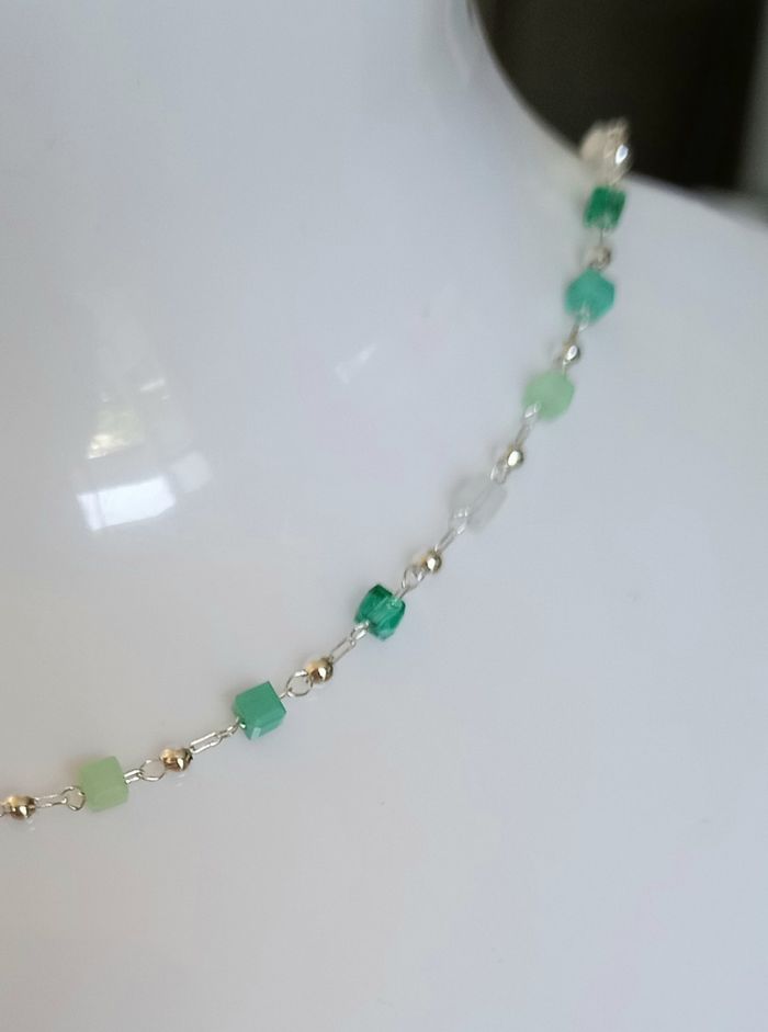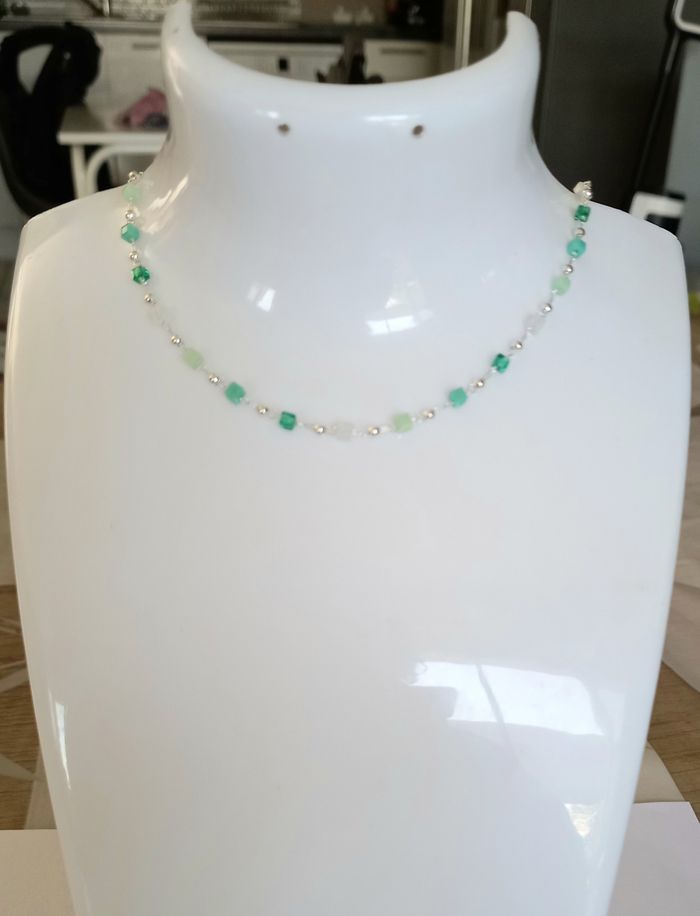 Collier ras de cou perles  dégradé vert et blanc - photo numéro 3