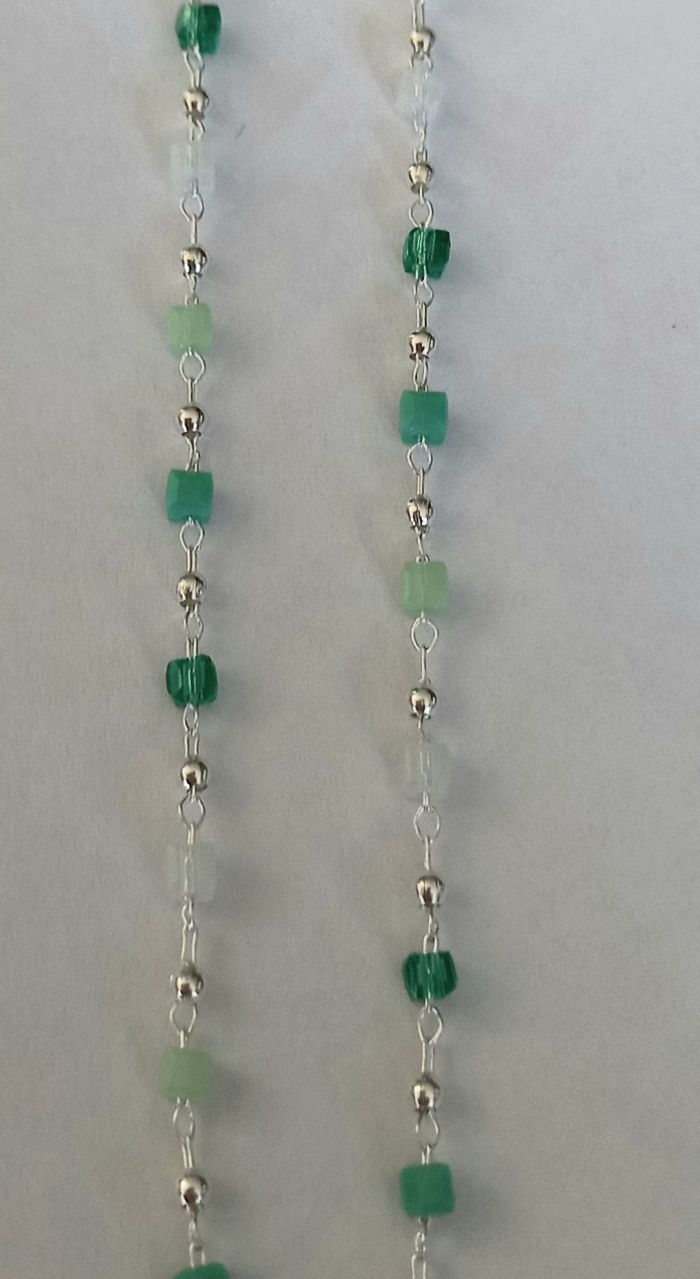 Longueur : 34 cms + 5 cms de chainette pour ajustement parfait du collier. Petites perles tout en dégradé de vert et blanc. Collier neuf sous blister. N'hésitez pas à regarder mes autres ventes. Envoi rapide et soigné.