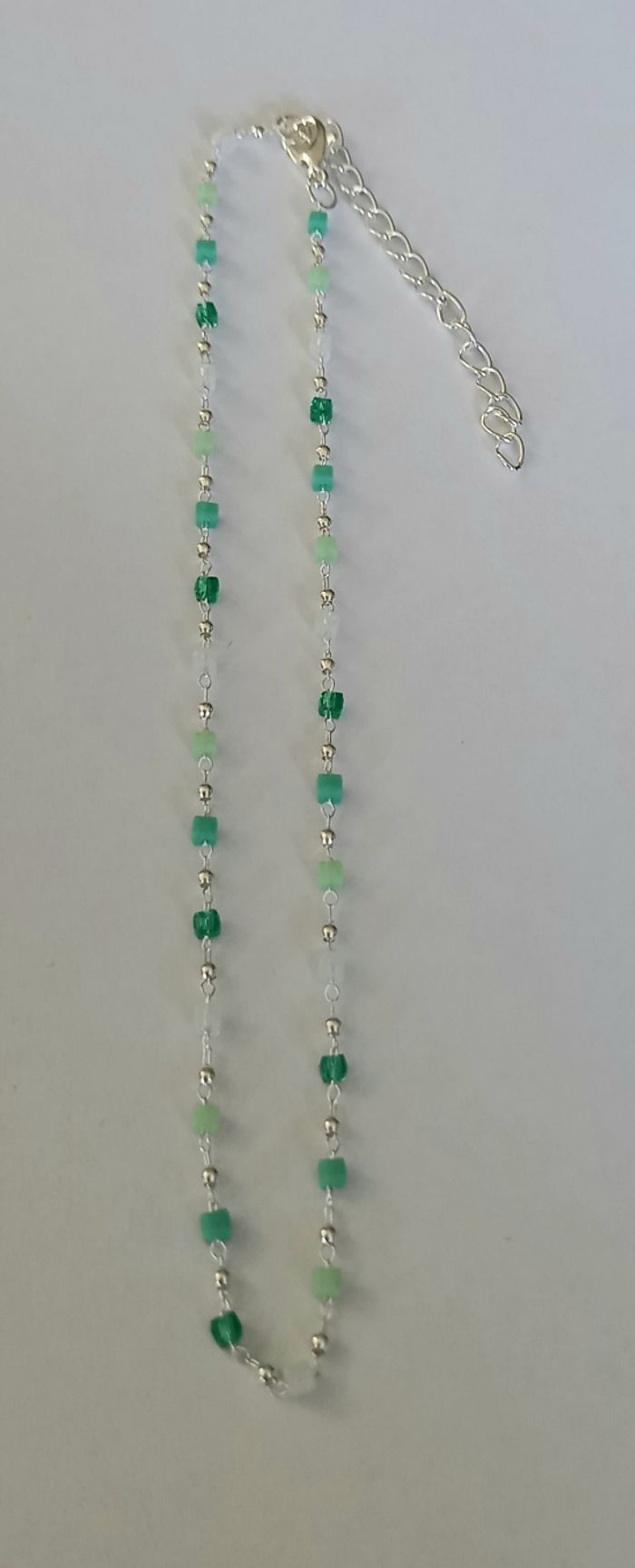 Collier ras de cou perles  dégradé vert et blanc - photo numéro 1