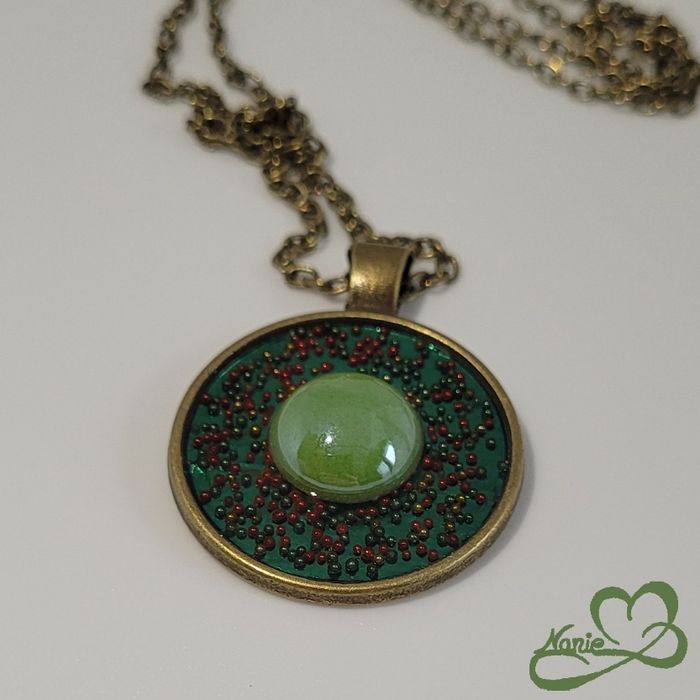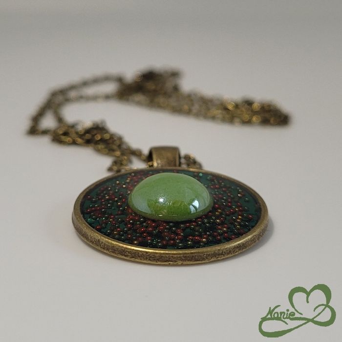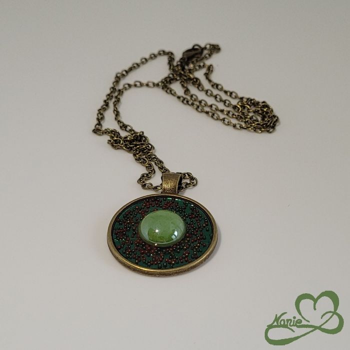 Sautoir en acier inoxydable couleur bronze et en resine avec une mosaïque verte - photo numéro 1