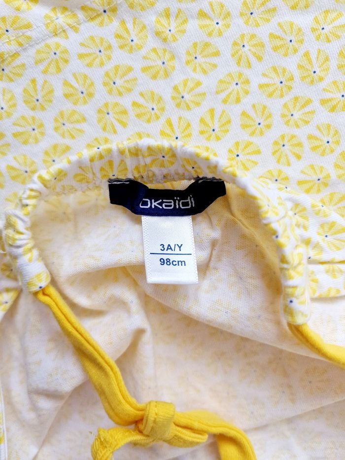 Tous mes articles Okaïdi : #okaidisev Tous mes tops : #topsev Tous mes débardeurs : #debardeursev Tous mes habits ♀️ 3 ans : #3anssevfille 🚨 Prix fixe Débardeur / top à bretelles Marque : OKAÏDI Couleur : jaune Taille : 3 ans - 98 cm État : neuf avec étiquette 100% coton Retrait sur place ou envoi.
