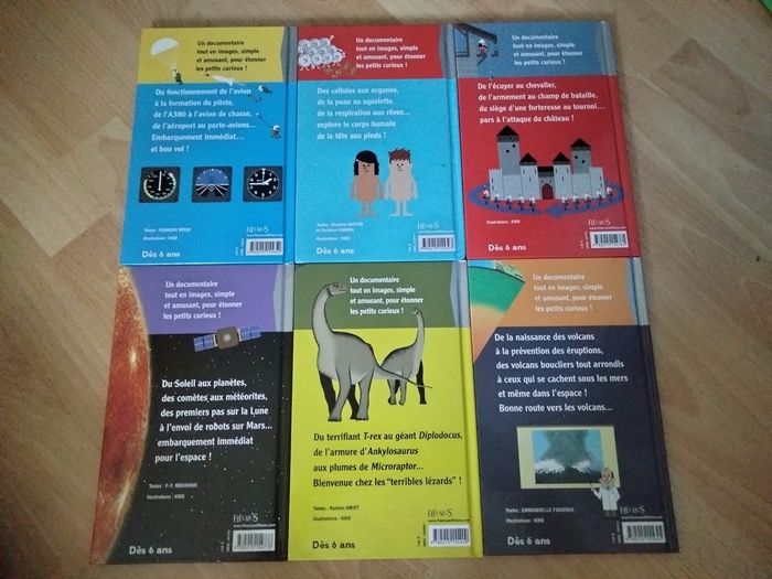 Collection Tout savoir en un coup d'oeil Pour les enfants de 6/8 ans Se compose de six livres: - Les volcans - Les dinosaures - Le système solaire - Les chevaliers - Le corps humain - Les avions Prix d'un seul album 7,50€