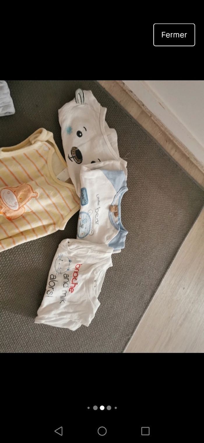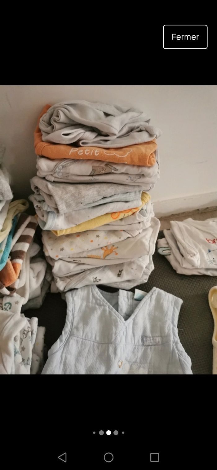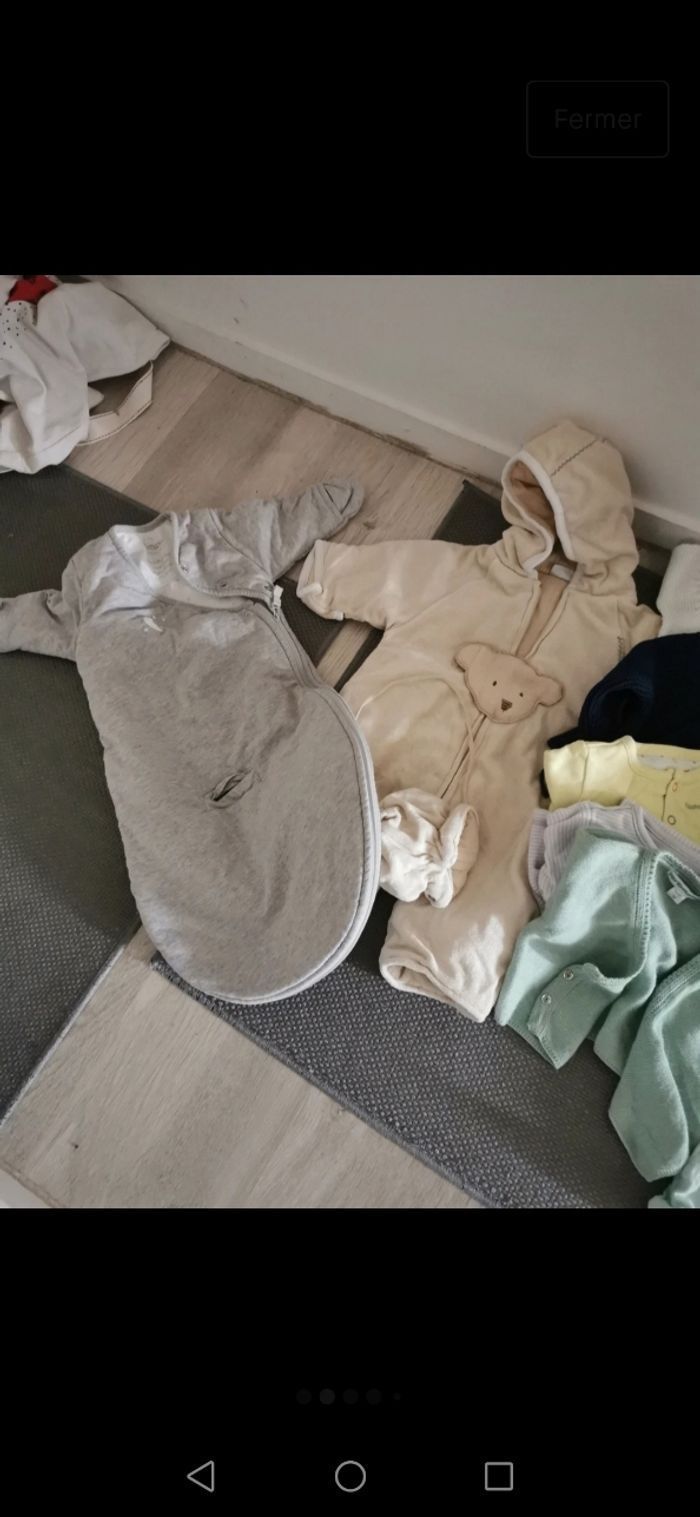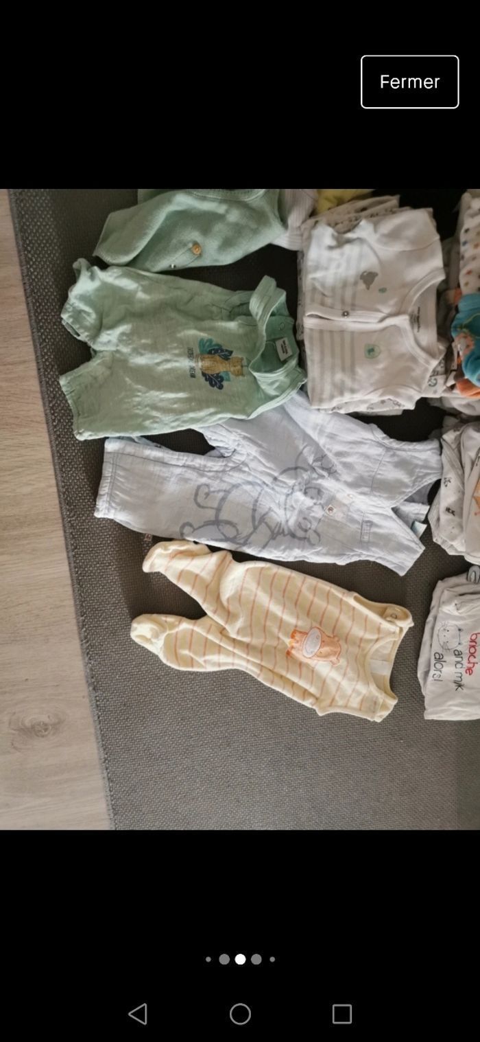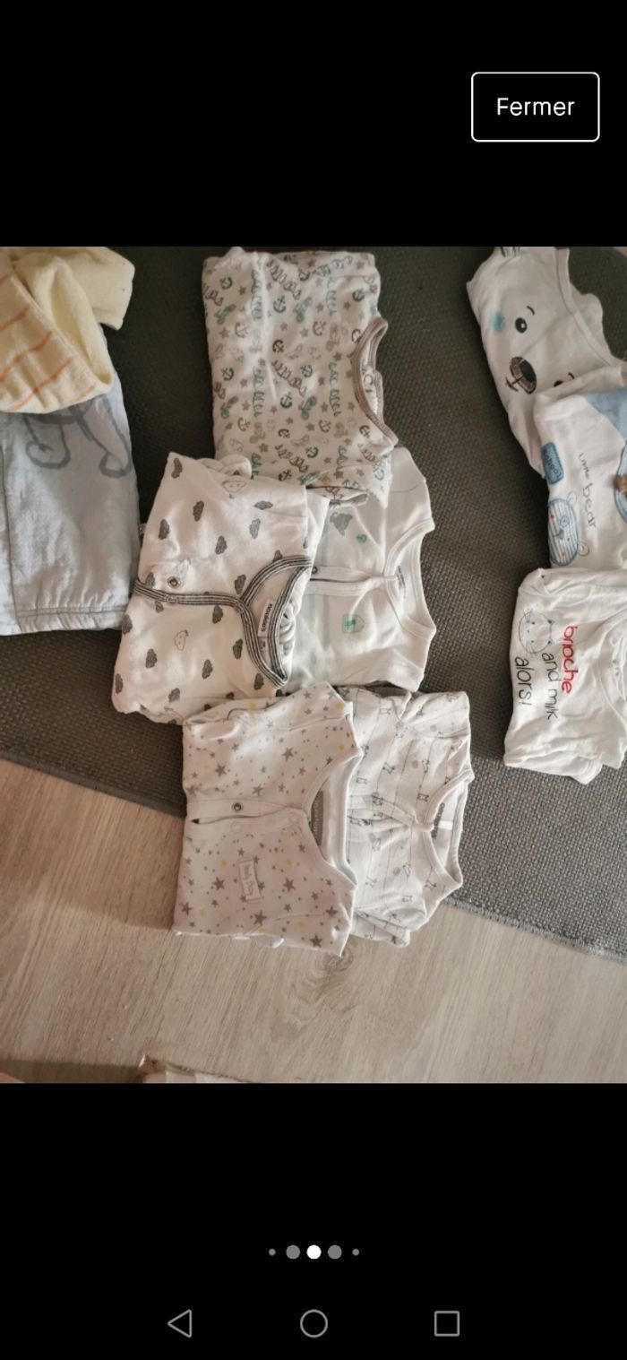 1mois,très bon état - 1pyjama 2 pieces -12 pyjamas Velour - 5 pyjamas coton - 20 bodies manches longues - 3 brassières coton - 2 gilets - 3 T-shirt manches longues - 1 salopette winnie - 1 salopette avec pied - 2 combi-pilote 50 articles de diverses marques (natalys, verbaudet, dpam, kiabi, disney...) en bon état voire très bon état car jamais portés