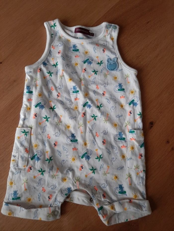 Combinaison motif vacances 😎 Vêtement porté une fois l'été dernier. Votre petit bonhomme sera trop mignon ! Sergent Major - 3 mois/56cm N'hésitez pas à prendre un lot dans le dressing...réduction enclenchée 😉