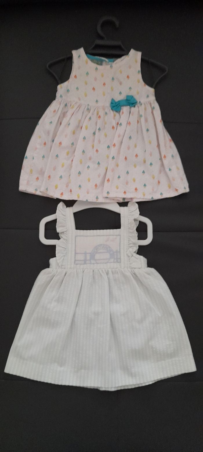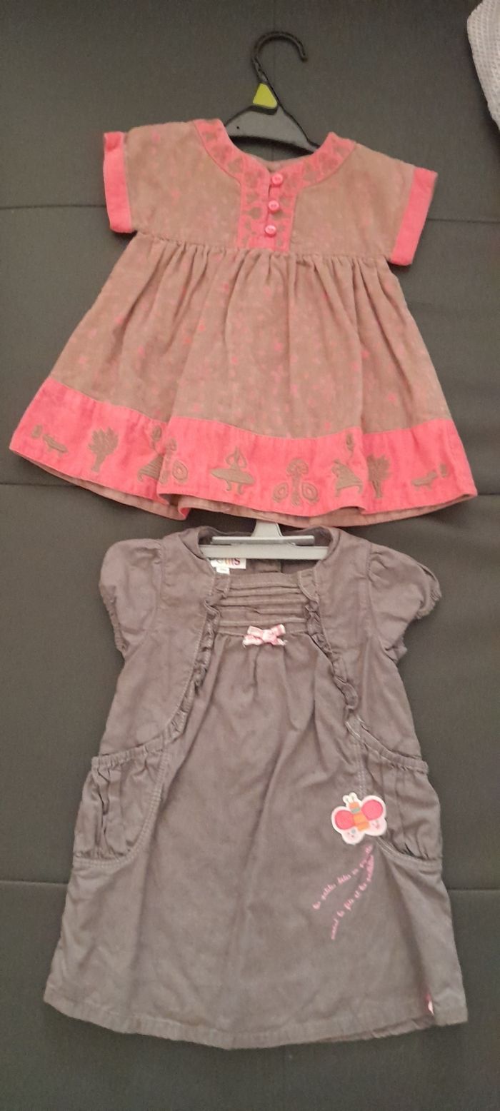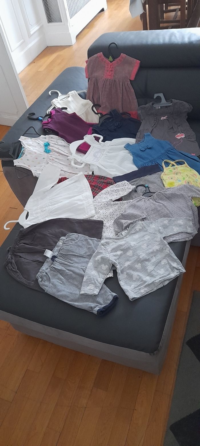 Lot fille T 6 mois 17 vêtements 9 robes ( baby gap/ kiabi/ crylor/ la compagnie des petits/ du pareil au même /benetton etc. ..) 3 hauts ( bout de chou/ du pareil au même) 3 pantalons ( petit bateau/ bout chou) 1 Tee-shir manches longues ( Disney) 1 maillot de bain ( du pareil au même) La majorité et en 100 % ou 95 % coton Le tout est en très très bon état