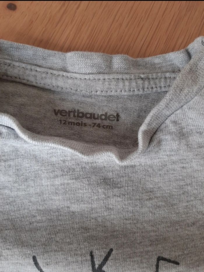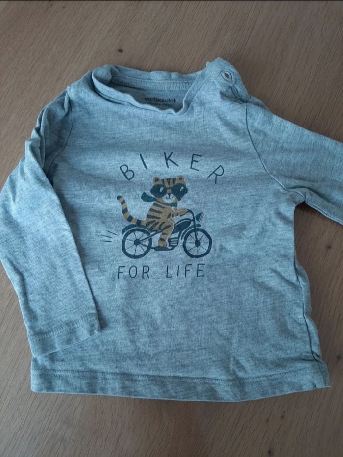 Tee shirt manches longues gris - thème chat motard Vertbaudet - 12 mois / 74 cm