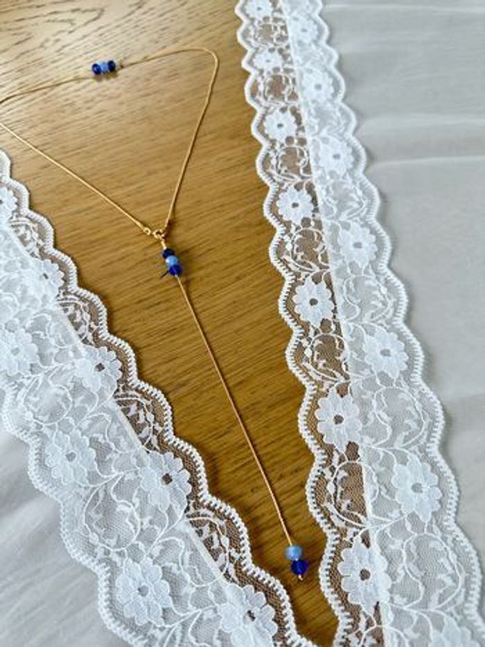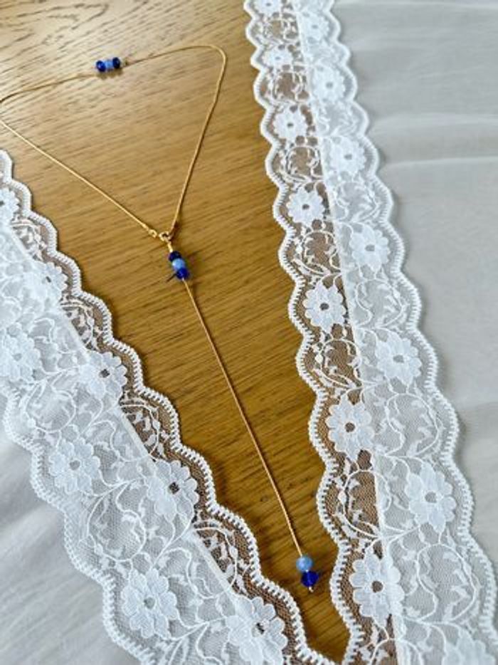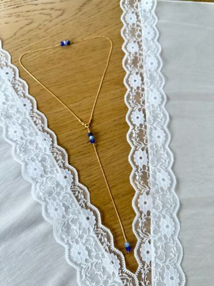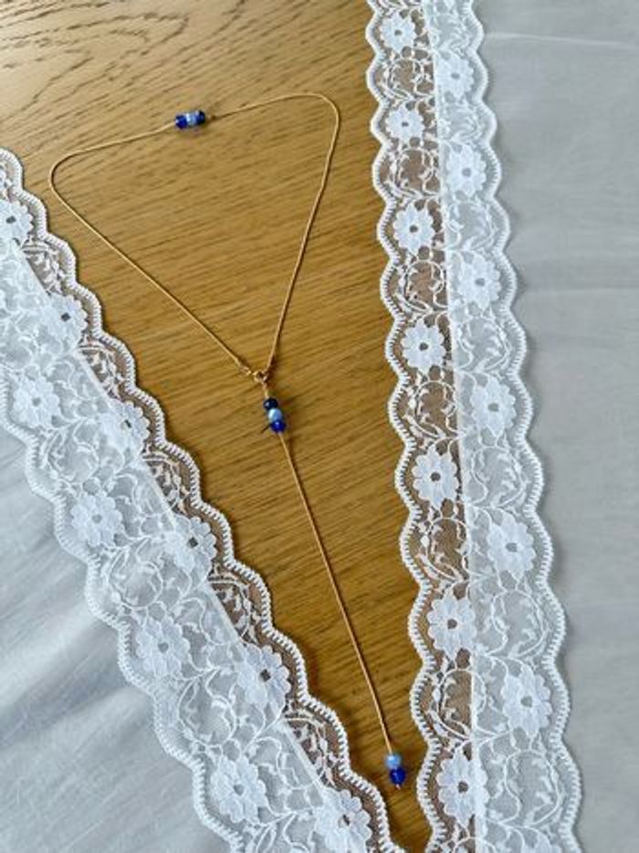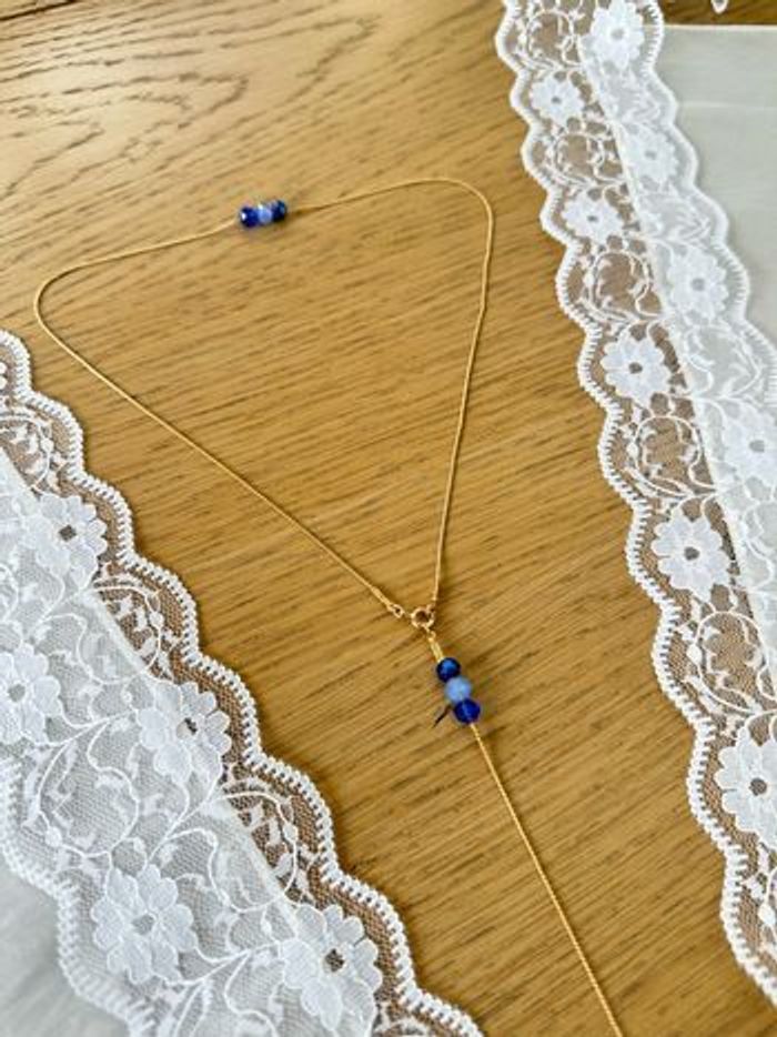Collier de dos en perles Cristal bleu existe en plusieurs couleurs voir photo