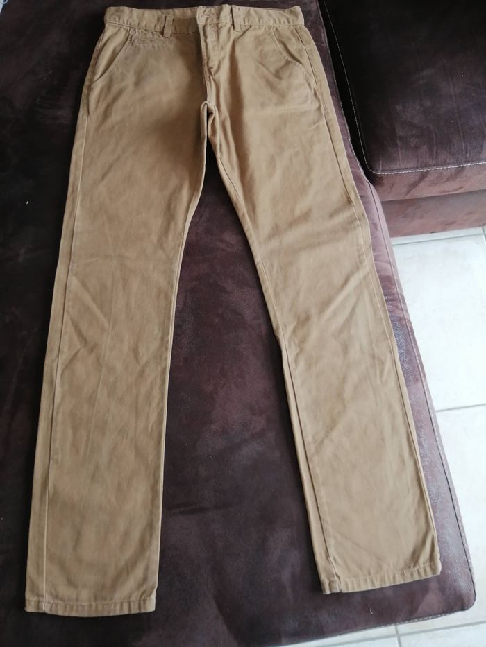 Pantalon couleur marron camel foncé.(il sera repassé lors de l'envoi). Taille 14 ans. Marque kiabi.